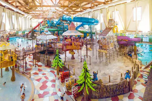 Great Wolf Lodge is a family-friendly resort featuring an indoor water park that offers fun for all ages. It includes water slides, a lazy river, and various interactive water activities, making it perfect for a day of fun with kids. In addition to the water park, the lodge offers themed rooms, a variety of dining options, and numerous family activities.